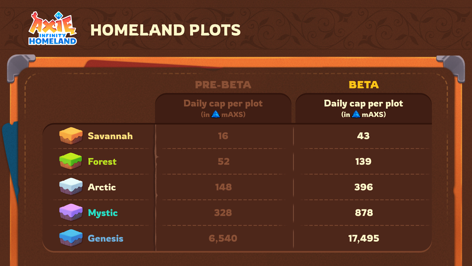 Land Staking Transition: With the Beta's launch, AXS previously allocated for land staking is redirected to in-game rewards. This shift emphasizes active gameplay and land management as the primary means of earning, moving away from passive staking rewards.